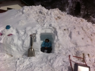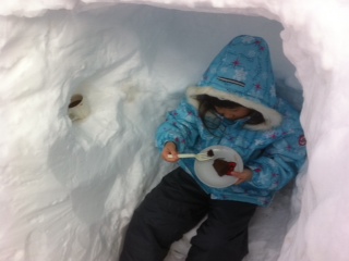 小さい人用のかまくらカフェでした(シェフお裾分けのガトーショコラとホットココア)。